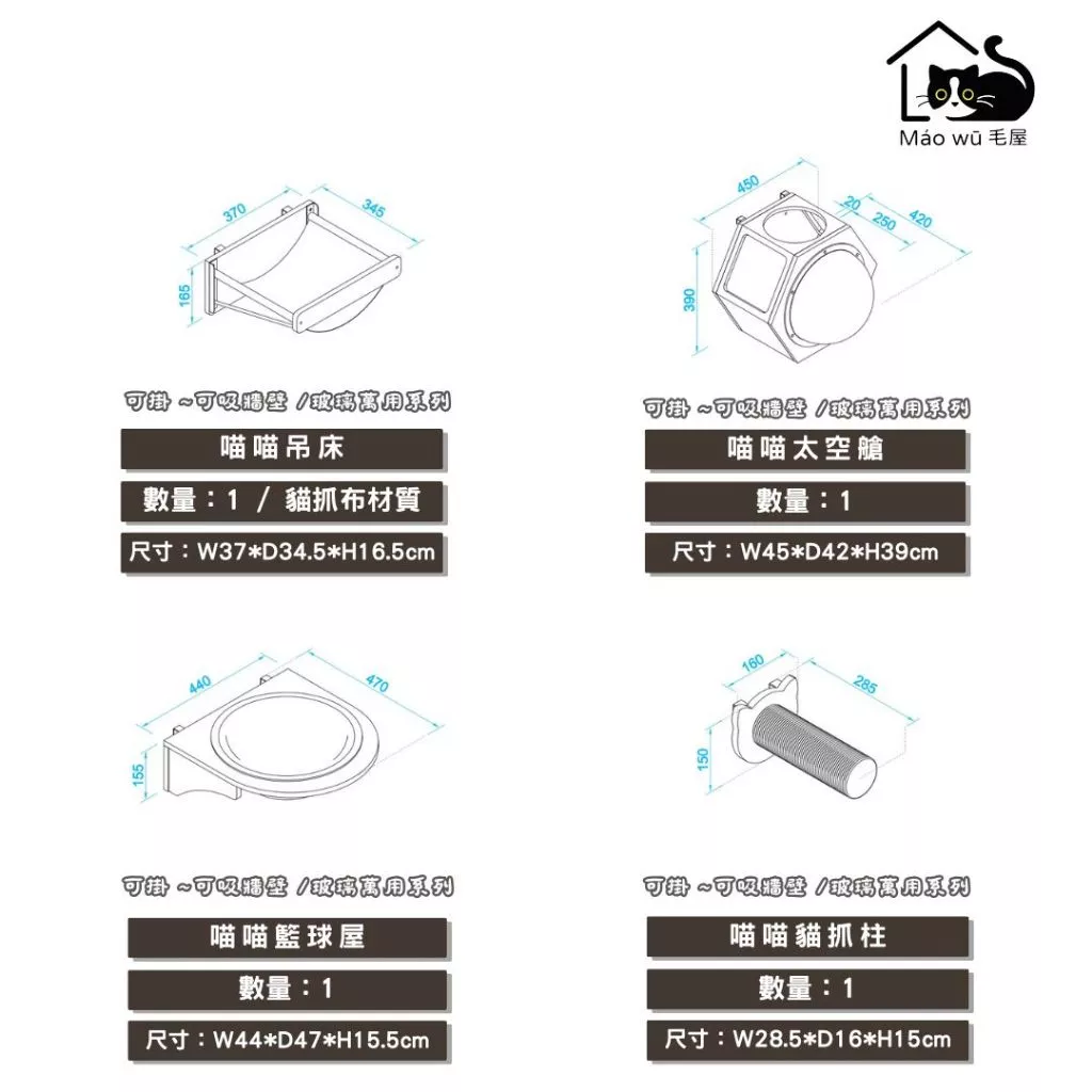 主架與配件可自由組合,根據家庭空間和貓咪性格打造獨特的活動環境!